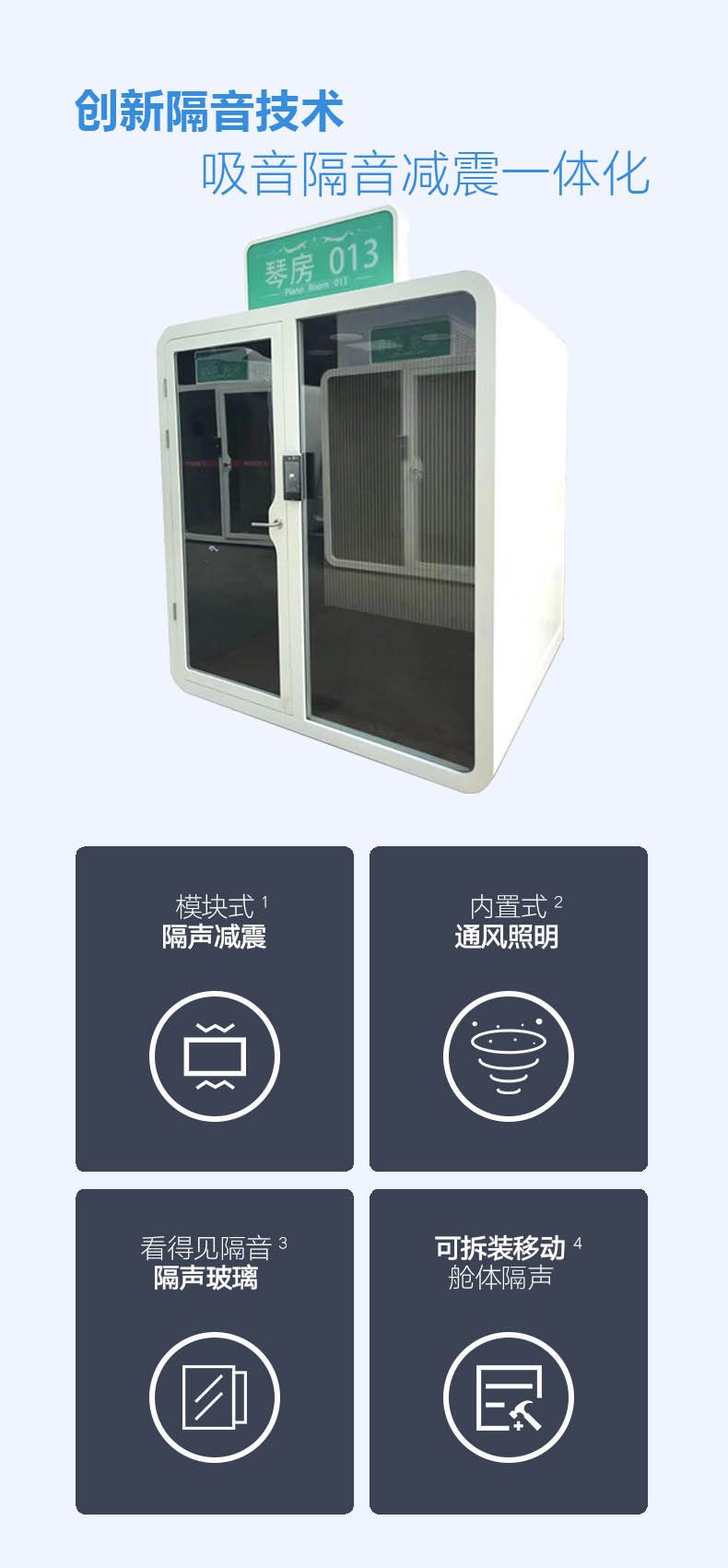 .可以通過App和小程序為用戶提供定位顯示,線上預(yù)約、掃碼開門、倉內(nèi)燈光、空調(diào)、凈化器自動啟動,自動記錄分析用戶的練琴數(shù)據(jù)并輸出建議指導(dǎo),用戶按使用時長自助結(jié)算,是一款很實用且便捷的自助智慧琴房,浩田自助琴房令充滿科技感.