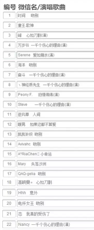 (請按照所錄點唱機的編號順序找自己的對應(yīng)編號)