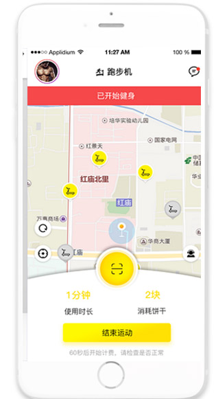 4,運(yùn)動(dòng)結(jié)束后,點(diǎn)擊APP上付費(fèi)結(jié)賬。