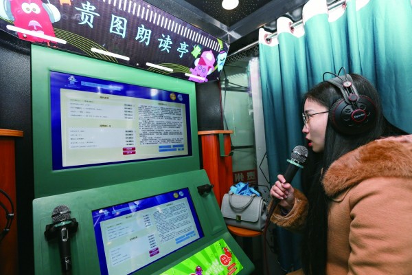 “貴圖朗讀亭”內(nèi)有完整的錄音設(shè)備、音響、電腦和麥克風(fēng)。朗讀者可選擇唐詩、宋詞、元曲、親子、現(xiàn)代文學(xué)和英語六大種類、涵蓋國內(nèi)外經(jīng)典著作的經(jīng)典片段,戴著耳機(jī),選擇配樂,還可將亭子里的簾子拉上,不受干擾的進(jìn)行朗讀。朗讀完成后,市民可將朗讀片段上傳分享至朋友圈,或上傳至貴陽市職工網(wǎng)絡(luò)讀書分享平臺,參加“朗讀大舞臺·就等你來”活動。