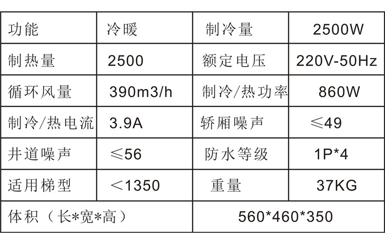 3、特強送風系統(tǒng)設計,送風均勻,制冷量大,使轎廂倍感寧靜、涼爽、舒適、愜意。