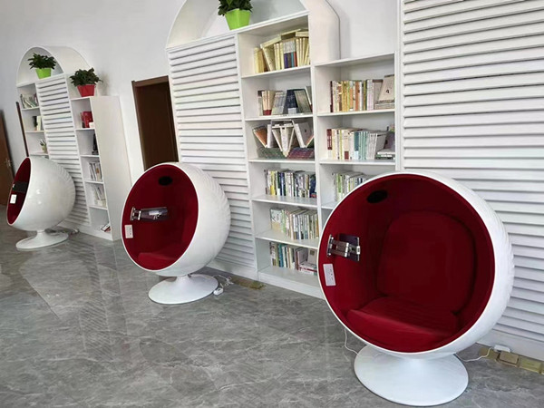 “休閑數字閱讀球型沙發”是我們憑借多年多媒體應用平臺開發和智慧圖書館服務經驗研發的一款舒適的閱讀產品。讀者可以通過智能數字閱讀終端,也可以聽書,聽音樂,也可以看視頻課件等,還可以通過藍牙播放手機音視頻。讓讀者在這又酷又炫的太空艙體驗感知新科技、數字化、藝術化的數字體驗空間。