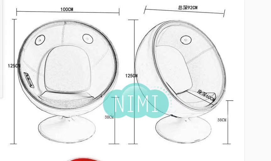 1.外觀:蛋椅玻璃鋼造型,可360度旋轉;